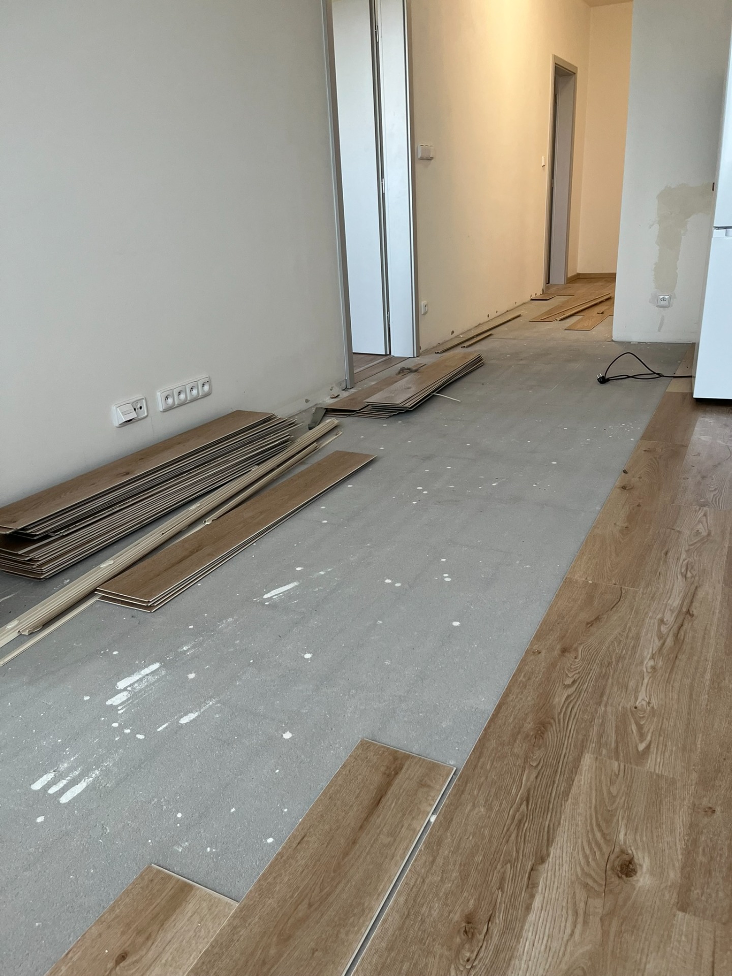 Demontovali jsme starou podlahu a připravili podklad pro novou krytinu. Následně jsme položili novou podlahu dle přání zákazníka. Podlaha je rovná, čistá a moderní.